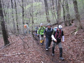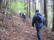 元気よく登って行く 10時16分 林の中、落ち葉を踏みしめ気持ちよく歩く。 |