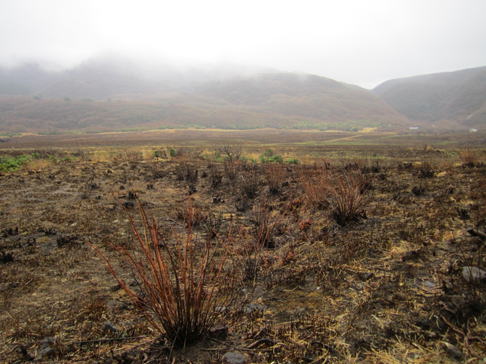 8、野焼きが終わったばかりの坊ヶツル。 まだ黒く焦げた跡が残っている。 11時05分