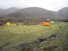 坊ヶツルキャンプ場 11時13分 テントが5張り程度。 雨風強い |