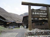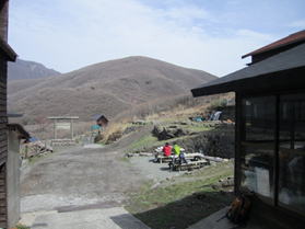 13、法華院温泉山荘到着 14時10分 下山タイムも38分だった。下ってくるとだんだん暑くなってきた。すっかり晴れている。 |
