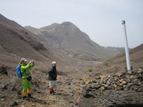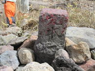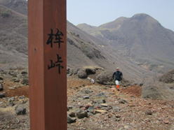 鉾立峠に到着 13時45分 相変わらず風は強い。この石柱は? 九水? |