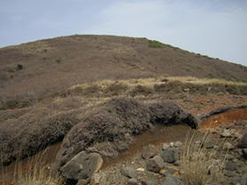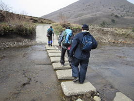 鳴子川を渡る 15時09分![]() 野焼きの跡、各所で新芽が萌えている。 |
