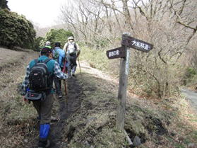 大戸越(うとんごし)への分岐 10時43分 進行方向左手に細い別れ道がある。 |