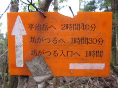 坊ヶツルへの表示 9時38分 すぐに分岐があった。表示通り右に進む。 |
