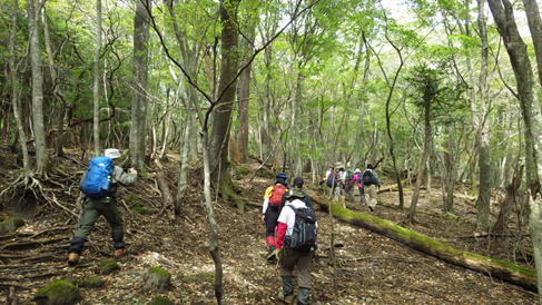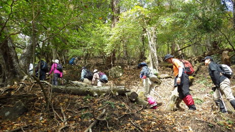 自然林の中を  11時10分  12人の集団はまだまだうるさいほど元気!