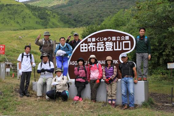 由布岳登山口での集合写真