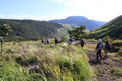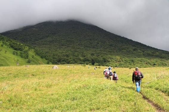 気持ちよく草原を歩いていくが、由布岳の山頂にはどんよりと雲がかかっている。
