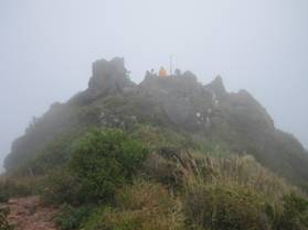 東峰山頂は霧でかすんでいる 13時18分 残念なことに霧が出てきた。