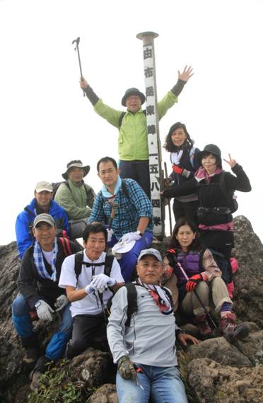 4、東峰山頂で記念撮影 1584m バンザーイ 13時23分
