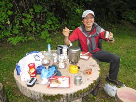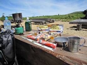 早朝4時に起床。登山準備に取り掛かる。 夜中の2時頃、トイレに行きたくなったが、ひょっとしたら熊が出るのではと思って我慢した。 有峰の森はどんぐりの実が多く、ツキノワグマの生息地とのこと。 夜は少々寒かったので、朝は暖かい味噌汁を作って身体を温めた。忘れ物がないように入念にザックを点検して登山口へ。 |