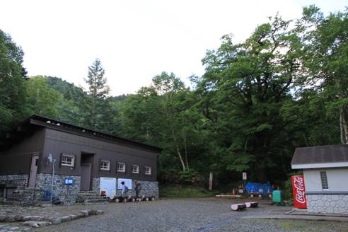 折立登山口。休憩所には登山届けポストが設置されていた。