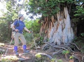 栂の木? 6時52分 見事な大木が出迎えてくれる。