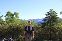 5、北ノ俣岳山頂 12時49分 2661m 薬師岳をバックに記念撮影。太郎平小屋から2時間だった。ここで簡単な昼食をとる。