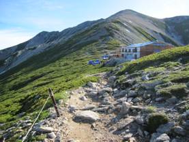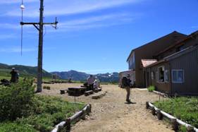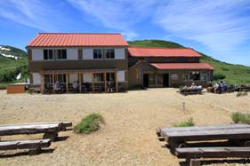 | 二日目(7月19日) 4時10分 起床 前夜から登山の支度を整えていたので、あまり焦ることはない。 5時の朝食まで小屋前の広場で写真を撮りながらボーっと待つ。 |