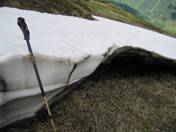 雪渓を注意して下る 9時55分 ここにも雪ダルマが・・・。