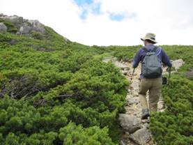 2576mピーク付近 13時43分 ハイマツの間を縫って歩く。