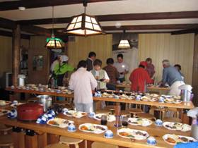 夕食風景 17時02分 宿泊客が一斉に食堂に入ってくる。