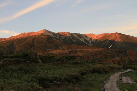 8、太郎平小屋を出発 5時35分 今回の主目標の薬師岳に向かっていざ出発。 まずは木道を進む。