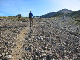 太郎平小屋へ向かう 14時55分 もったいない眺めを楽しみながら歩く。