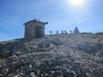頂上が見えた 7時45分 避難小屋の左を通る本来のコースに戻る。