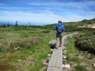 木道を下る 13時59分 花を見ながらゆっくりと下る。