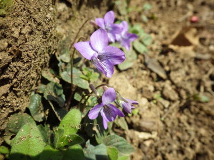 メモリアルクロス前の小文字山登山口で見つけた小さなスミレ