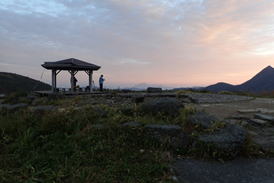 沓掛山の肩に到着 6時42分 この場所から阿蘇五岳を眺めるのも楽しみにしている |