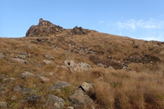 ついさっき歩いた星生山の稜線を見上げる 13時45分 |