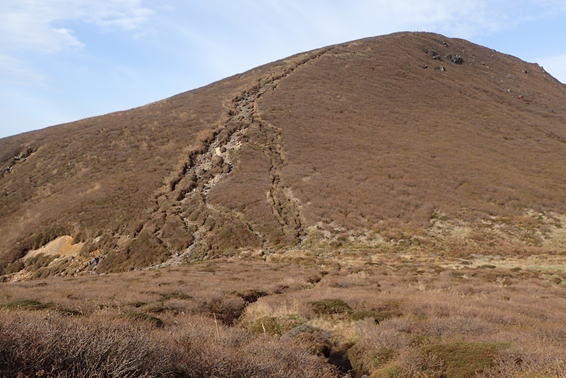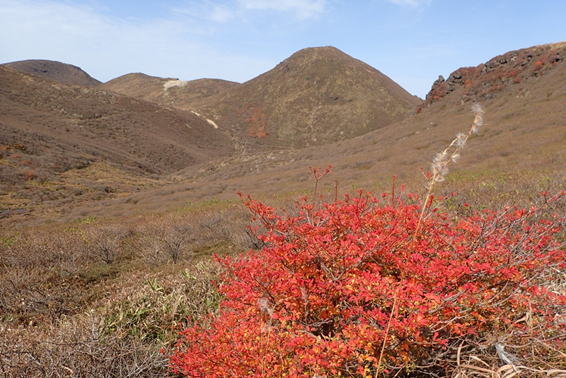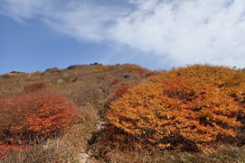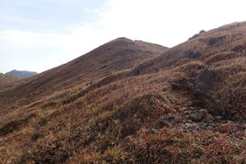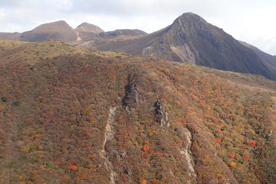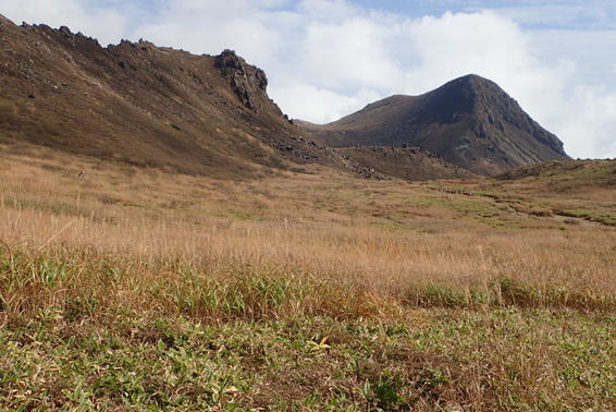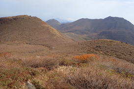 秋を感じる風景 10時03分 白口岳への途中、中岳を眺める。 |