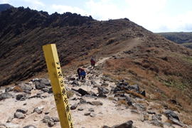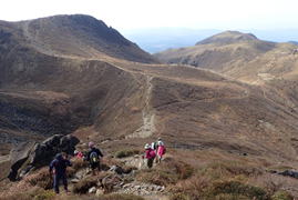 | くじゅう連山の表玄関と言えば、長者原と牧ノ戸登山口である。特に牧ノ戸は久住山に近く、歩きやすい登山道なので人気が高い。シーズンともなれば大勢の登山者が押し寄せて、とても賑やかな登山口となる。今回はその牧ノ戸登山口から久住連山をグルッ〜と一回りしてみた。晩秋の風は冷たかったが、一生懸命歩くにはちょうど良い気候だった。 |