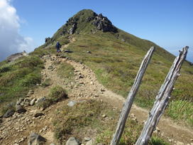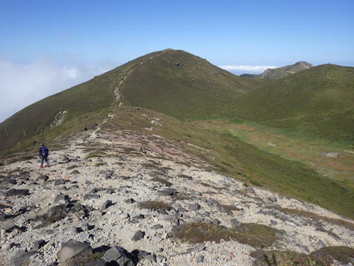 久住山からの道と合流、久住分れへと急ぐ 12時29分 これから上る星生崎が迫ってくる