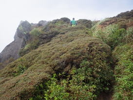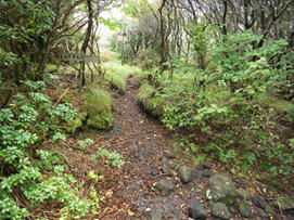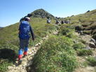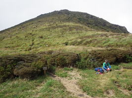 星生崎に挑む前に休憩 12時34分 トイレのある広場には下りず、そのまま星生崎を目指す。でもその前にこれからの急登に備えてちょっと休憩。 急登を一歩、一歩 |