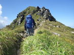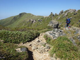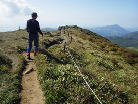 稲星山から久住山への道 9時36分 右下は東千里ヶ浜