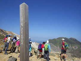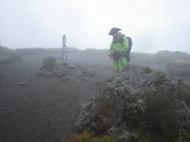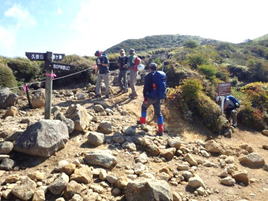 36、星生山 13時25分 1762m 数人の方が休憩していた。右下には硫黄山が活動している。以前に比べると噴煙の量が少ないような気がするが・・・。 17座目 |