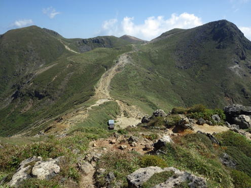左奥は稲星山。御池の右上の稜線にはお弁当を食べた慰霊碑が黒い点となって確認出来る。