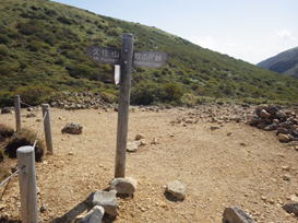 稲星山と久住山の鞍部の分岐 9時47分 |