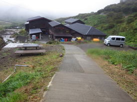7、法華院温泉山荘ベンチで休憩 11時44分 法華院温泉山荘の看板の前には、大きな登山靴のオブジェが置かれていい感じ。雨はすっかり止んで平治岳が見えてきた。 きままに登山靴 |