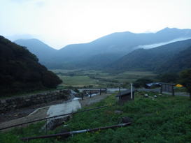 | 19、法華院温泉山荘 5時07分 まだ暗い中を二人で静かにスタート! |