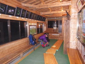![]() 山荘内廊下(左右個室が並ぶ) |