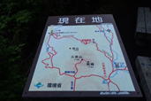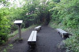 ベンチで休憩 5時23分 先着者が一人。ベストを脱いで、水分補給。 静かな森の中でカッコウの囀りが響く。 現在地確認 |