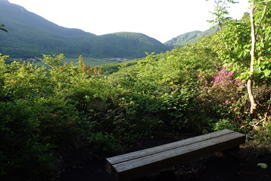下山ルートはどうしよう?雨ヶ池コースで戻っても良いが、三俣山西峰斜面のミヤマキリシマも気になるし・・・と言うことで法華院温泉山荘の裏からスガモリコースで長者原に戻ることにした。 |