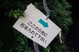 平治岳では九州の自然を守る会が「一人一石運動」を行っている。ぬかるんだ登山道に石を置く運動である。私も小石を10個程持って歩くことにした。 |