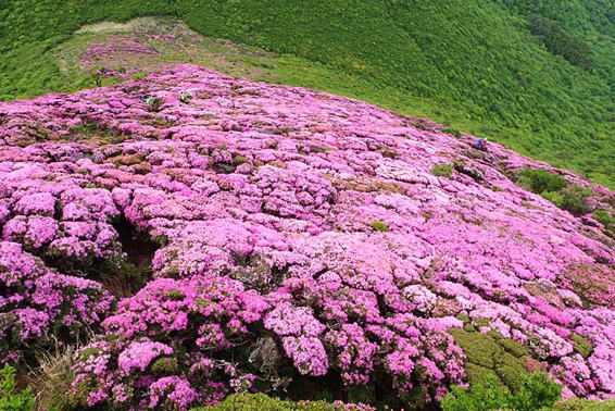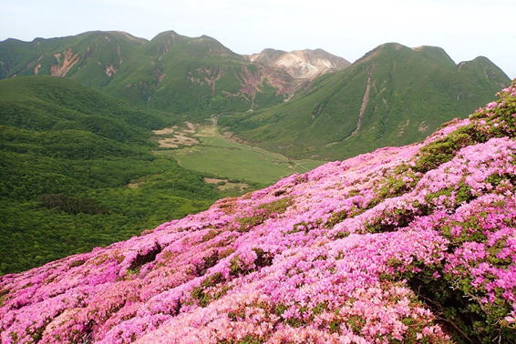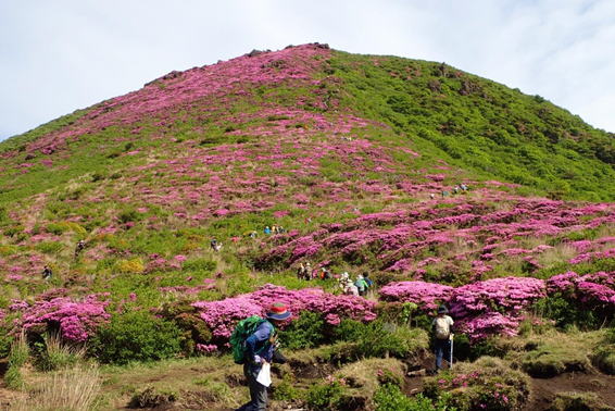 ここから見る北大船山のミヤマキリシマはほぼ満開のように見える 11時26分 |