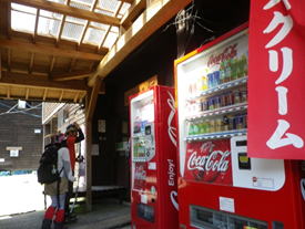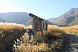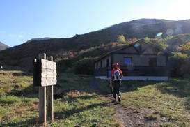 管理休憩舎を右に見て進む 8時16分 ここで休憩しようと思ったが、早く頂上に登りたいという気持ちには勝てず、そのまま登山口へ向かった。 |