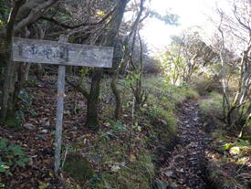立中山への分岐表示 8時47分 前述の「大船山」表示右側に立中山への表示がある。文字が消えかかっている。一度このコースに挑戦したいと思っているが・・・大丈夫? |