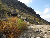 三俣山を見ながら下山 15時15分 よ〜く見ると山肌が紅葉しているのがわかる。 |