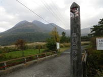 ヘルスセンター裏手で記念撮影 15時49分 24102歩。今日もよく歩いたものだ。最後に三俣山をバックに一枚、記念撮影で締めくくる。 |