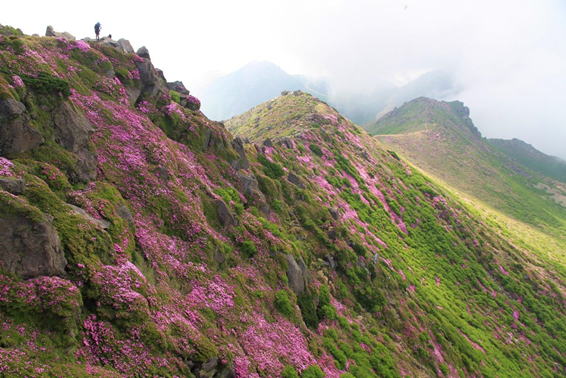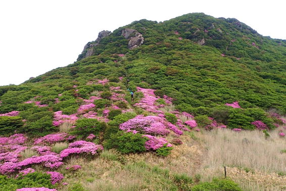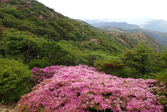 山を彩るミヤマキリシマ 8時28分 扇ヶ鼻を下山する際に目にする素晴らしい風景 |