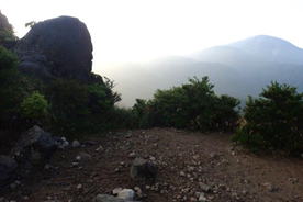 三俣山も涌蓋山も、うっすらぼんやりで景色はあまり望めない。 |