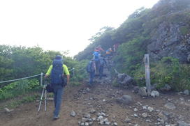 この時間帯は下る人より、上る人の方が多い。登山道ですれ違う人に、何十人いや何百人挨拶しだだろう(笑) ファミリー登山を見かけると昔を思い出して、つい声を掛けてしまう。 |